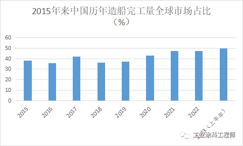 目前,船舶涂料国内市场80%以上份额被外资企业占据,与造船业的市场占有率极不匹配,尚有很大的国产替代空间。